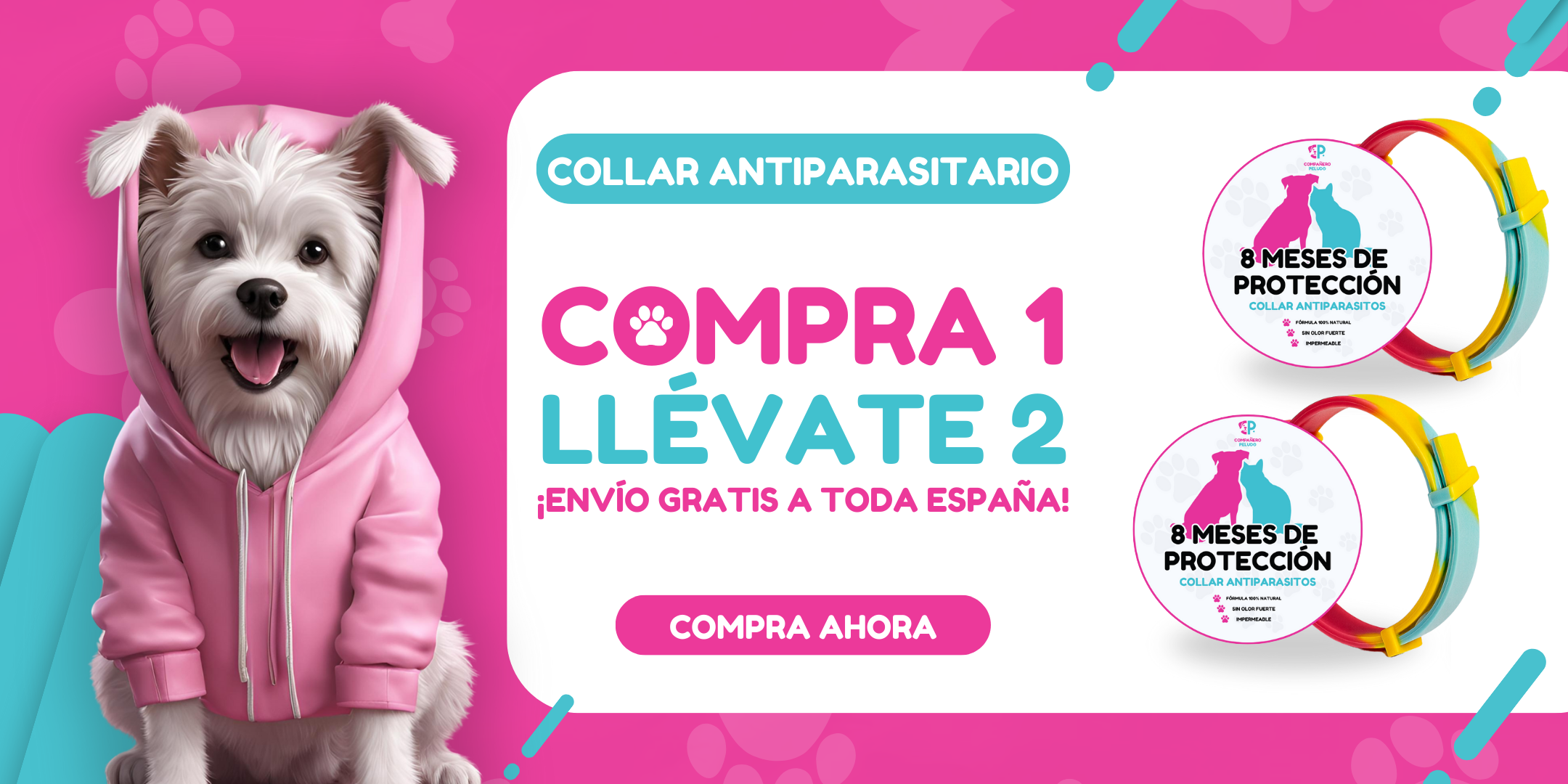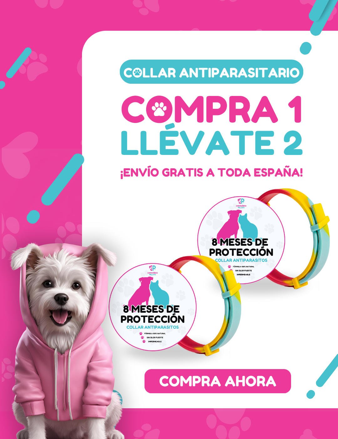 Promoción Especial: Compra 1 Collar Antiparasitario y Llévate 2 – 8 Meses de Protección – Ajustable para Perros y Gatos – Talla 70cm